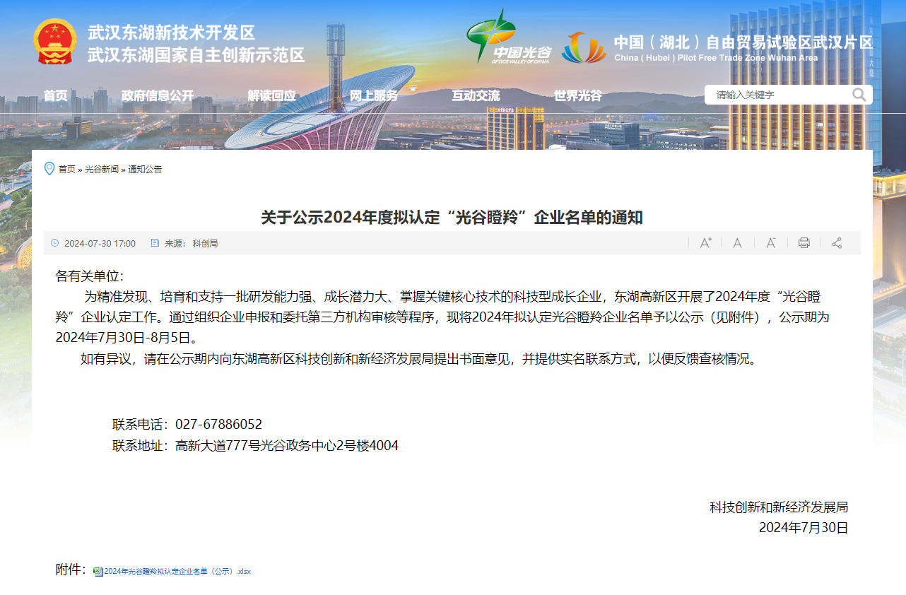 武漢東湖新技術(shù)開發(fā)區(qū)科技創(chuàng)新和新經(jīng)濟發(fā)展局于7月30日公示了2024年度擬認定“光谷瞪羚”企業(yè)名單。此次,新銳科創(chuàng)公司憑借其在高新技術(shù)領(lǐng)域的卓越表現(xiàn)和快速成長成功入選,展現(xiàn)了公司強大的創(chuàng)新能力和發(fā)展?jié)摿Α?br />