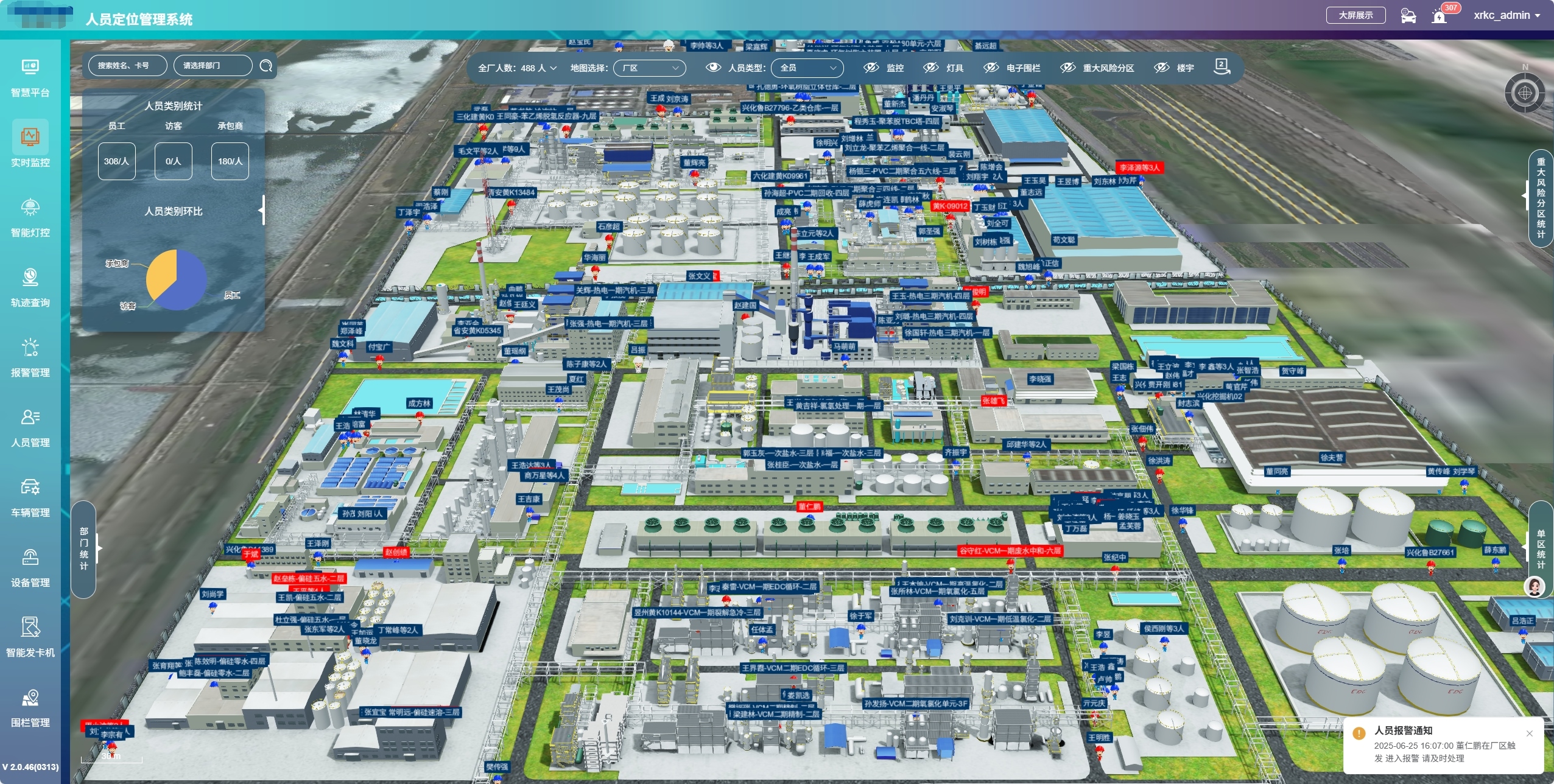 新銳科創的人車定位系統并非單一的定位工具,而是集多種實用功能于一體的綜合性管理平臺,為煉油廠的綜合運營管理提供全方位支持。通過與管理平臺深度融合,該系統能夠實時呈現煉油廠內所有人員與車輛的位置分布及行動軌跡。管理人員在監控中心,通過電子地圖便可清晰掌握每位員工、每臺車輛的實時位置,隨時了解工作進展,實現對生產作業的精細化管理。