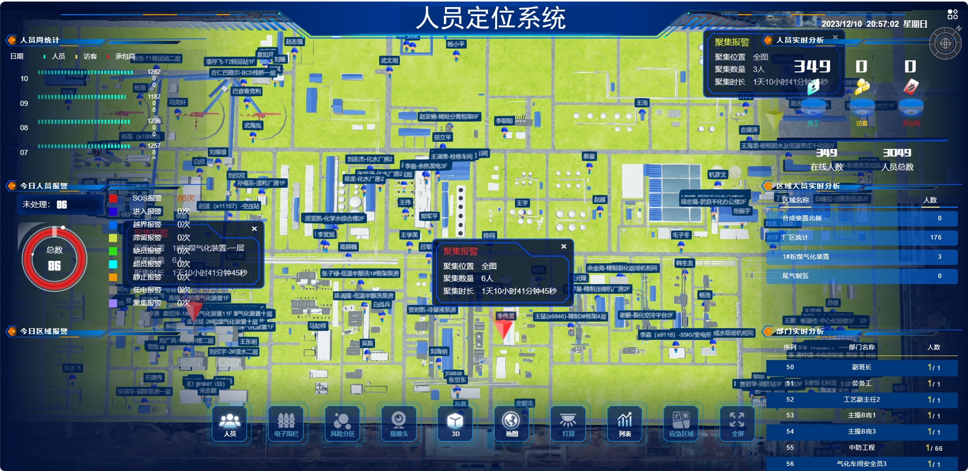 系統(tǒng)以直觀的2D或3D電子地圖為載體,實(shí)時(shí)展示人員和車輛的精確位置,支持按照部門、工種等多種方式進(jìn)行分類查看。管理人員可隨時(shí)選擇特定人員或車輛進(jìn)行實(shí)時(shí)追蹤,全方位掌握其行動(dòng)軌跡和當(dāng)前狀態(tài),實(shí)現(xiàn)對(duì)現(xiàn)場(chǎng)作業(yè)的實(shí)時(shí)監(jiān)控與有效指揮。