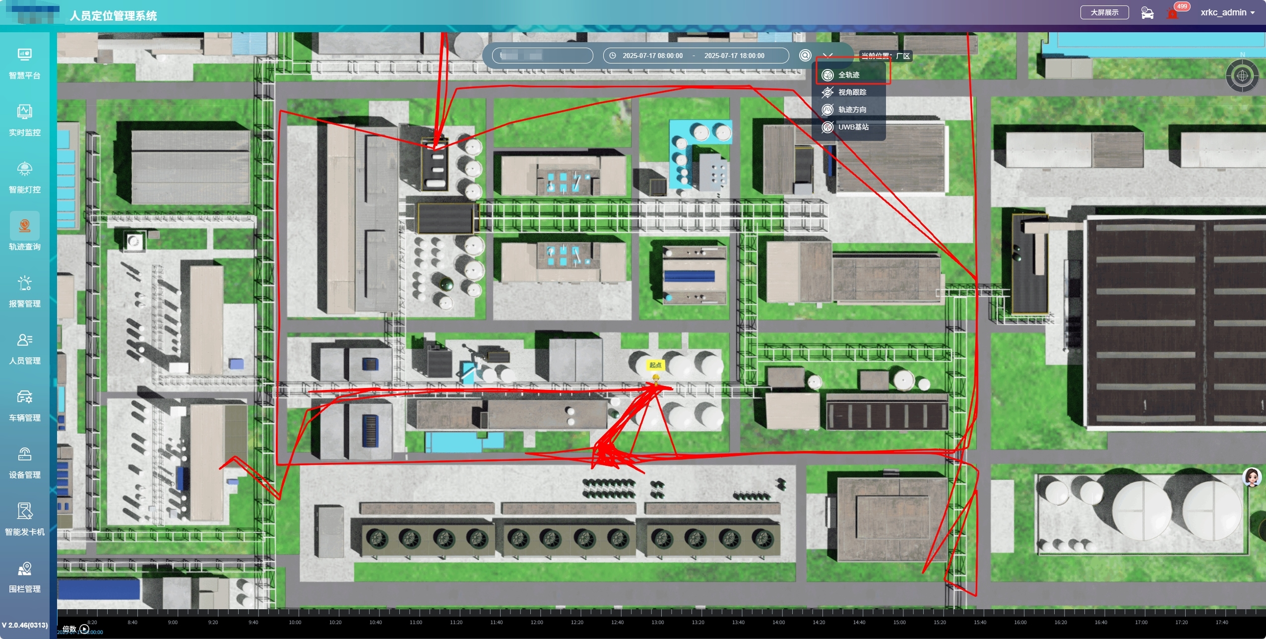 通過融合北斗RTK在室外的亞米級定位精度與UWB在室內的亞米級定位優勢,該系統能夠精準掌握石化廠內每一位員工的實時位置。無論是在廣闊的室外儲罐區進行巡檢作業,還是在結構復雜的室內生產車間忙碌工作,管理人員都能在監控平臺上清晰、準確地看到人員的具體位置,誤差極小。這有助于及時發現人員是否誤入危險區域,是否在規定的工作區域內活動,從而有效預防安全事故的發生。