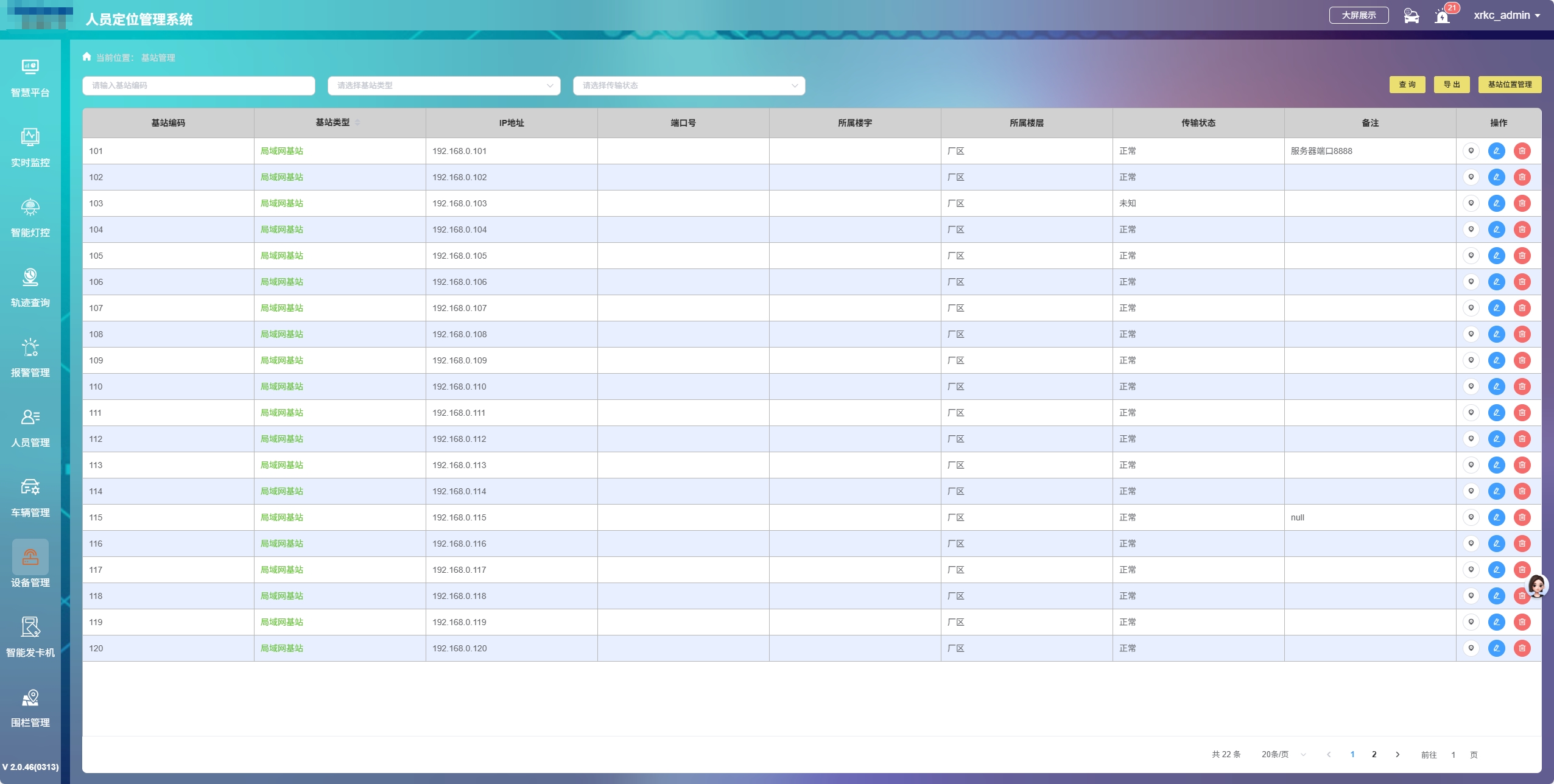 無縫過渡銜接:當人員或車輛從UWB覆蓋的核心車間移動至藍牙覆蓋的通道、走廊時,系統通過智能算法自動識別場景變化,實現定位技術的無感知切換,避免出現位置數據斷層,確保定位的連續性。