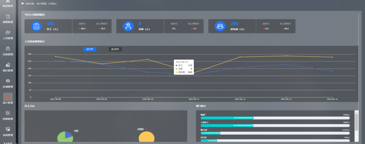 系統支持在廠區自定義設置電子圍欄范圍,設定圍欄生效時間、限定人數,通過設定區域的進入權限管理規則,系統能夠確保人員只在安全范圍內活動,有效防止了違規進入危險區域的行為。