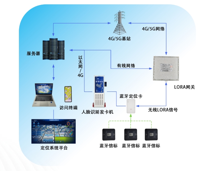 定位服務器解析:LoRa基站將收集到的位置信息通過4G/5G或以太網傳輸到定位服務器。定位服務器利用融合定位算法,綜合藍牙信標和LoRa基站的數據,解算出目標的精確位置。