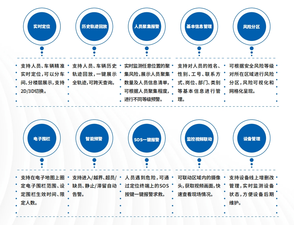 人員定位系統的實時跟蹤定位、歷史軌跡追溯、電子圍欄管理、智能預警管理等功能可以實時獲取人員相關信息,對作業人員尤其是高風險作業人員實現實時安全監控以及風險管控,對可能出現的風險提前預防,對突發的險情及時救援,在降低安全風險的同時提高企業安全生產水平。