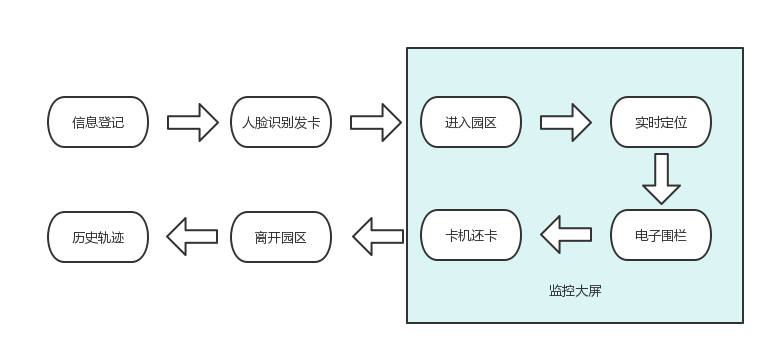 人員/車輛進(jìn)入園區(qū)前,提前登記相關(guān)信息,到達(dá)園區(qū)入口處通過人臉識(shí)別發(fā)卡機(jī)自動(dòng)發(fā)卡,車載定位標(biāo)簽通過人員發(fā)放,獲取定位標(biāo)簽;
